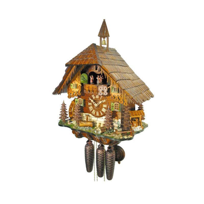 – Đến mỗi giờ, trước tiên cửa sổ sẽ mở và chú chim sẽ nhảy ra hót số lần tương ứng với giờ hiện tại. Sau đó 1 bài nhạc nổi lên, các vũ công trên tầng 2 nhảy múa và cối xay nước xoay nhẹ nhàng theo tiếng nhạc.