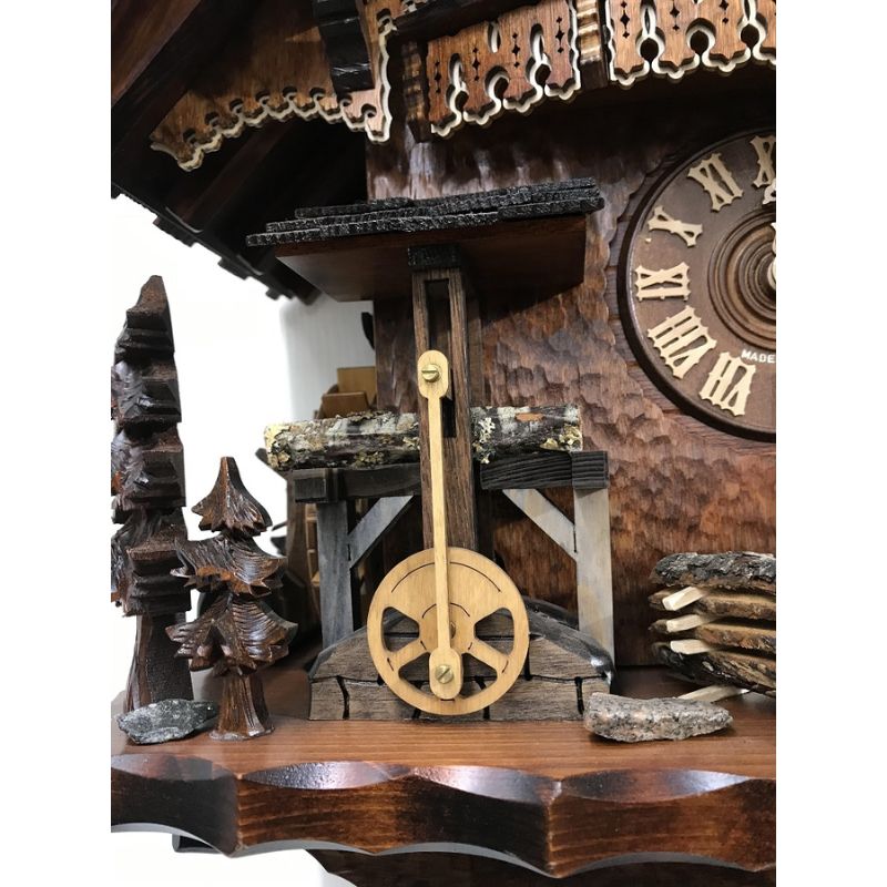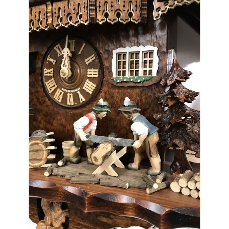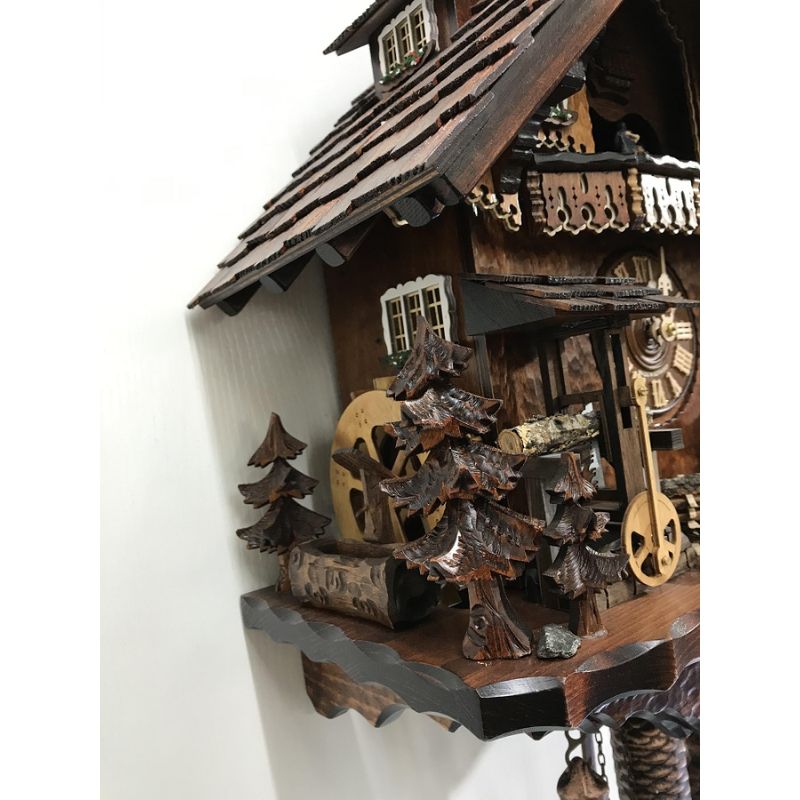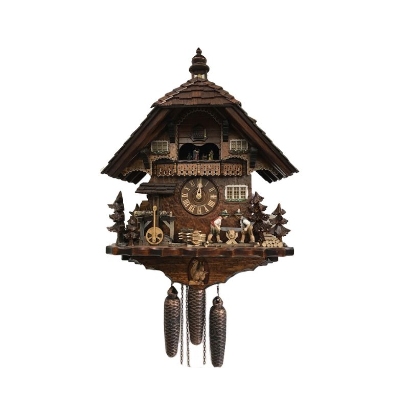 – Đến mỗi giờ, trước tiên cửa sổ sẽ mở và chú chim sẽ nhảy ra hót và 2 người đàn ông sẽ cưa gỗ. Sau đó 1 bài nhạc nổi lên, bánh xe nước bên hông nhà sẽ xoay tròn làm cho máy cưa gỗ tự động bên trái chuyển động theo, các vũ công trên tầng 2 sẽ đu đưa theo tiếng nhạc.