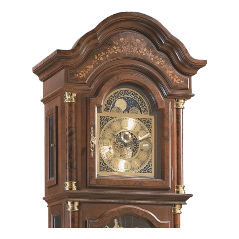 Bộ máy bên trong: HERMLE 01210-031171 sử dụng loại máy có 3 ổ cót, sử dụng khóa lên cót để di chuyển quả tạ từ dưới lên trên, khả năng tích cót 8 ngày. Được trang bị chuông ống đồng,3 chế độ đánh chuông Westminster (đánh chuông nhà thờ), Whittington, St.Michael cứ 15 phút dạo 1 đoạn nhạc, 1 tiếng dạo đủ bài nhạc và điểm tiếng (lúc 6h sẽ điểm 6 tiếng chuông) tính năng tự động ngắt chuông ban đêm và lịch tuần trăng để theo dõi âm lịch (trăng đầy ngày 16 âm lịch hàng tháng) là những tính năng khá phổ biến trên các sản phẩm đồng hồ cây cao cấp HERMLE. Đa số những người chơi đồng hồ cây luôn muốn thưởng thức những nét đẹp nghệ thuật, cảm nhận những nét tinh tế của một nền văn hóa, nhìn ngắm những đường nét tinh hoa của gia công chế tác bậc nhất thế giới. Hãy tới Đồng hồ WatchTime và cùng chúng tôi cảm nhận, phê bình những kiệt tác nghệ thuật này.