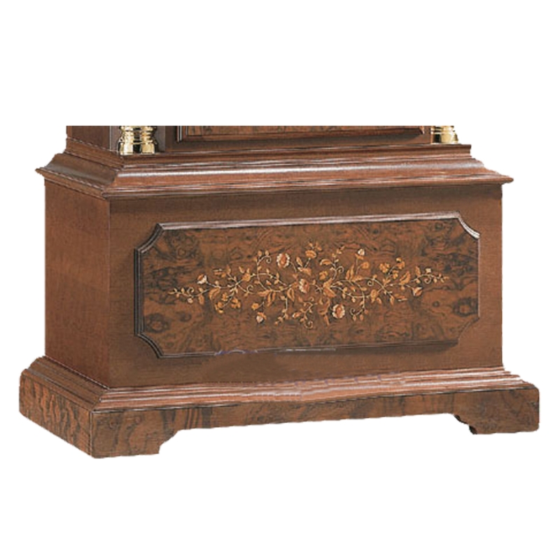 Không khó hiểu khi HERMLE ưu tiên sử dụng gỗ Óc Chó (Walnut) màu nâu sẫm được phủ vec-ni để làm tủ đồng hồ, cũng thường được sử dụng để làm đàn Piano và các sản phẩm nội thất cao cấp, các thông số kích thước: cao 220cm, rộng 71cm và bề dày 36cm mang thiết kế cổ điển, sang trọng. Nổi bật trên nền vân gỗ tự nhiên là từng đường nét hoa văn theo phong cách châu Âu được chạm khắc tỉ mỉ, mang lại cảm giác sang trọng, cổ điển và sự gẫn gũi, ấm áp.