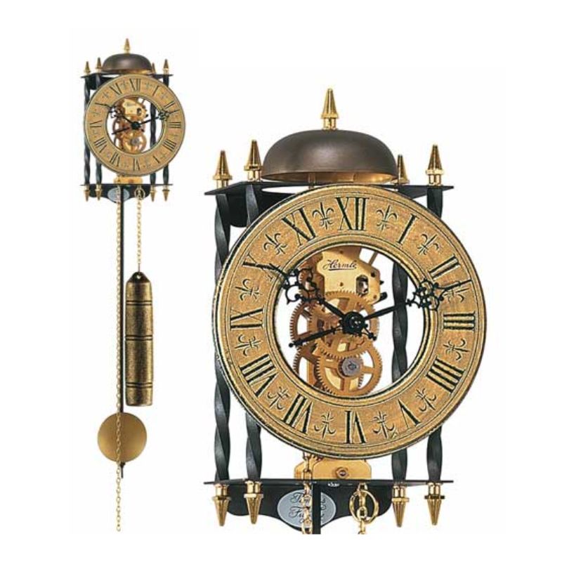HERMLE 70504-000701 mẫu đồng hồ treo tường độc quyền của nhà Hermle được sản xuất tại Đức. Với ngoại hình thu hút, HERMLE 70504-000701 có thể làm siêu lòng bất cứ khách hàng khó tính nào. Cực phẩm đồng hồ đến từ Đức sở hữu mặt đồng hồ tựa như một vành đĩa lớn rỗng ở giữa giúp người sử dụng có thể dễ dàng chiêm ngưỡng bộ máy cao cấp màu vàng Gold sáng lấp lánh. Cách Hermle kết hợp màu sắc chưa bao giờ làm công chúng thất vọng, và HERMLE 70504-000701 chính là minh chứng cụ thể và sinh động nhất. HERMLE 70504-000701 là sự kết hợp hoàn hảo giữa các màu sắc đặc trưng của kim loại như đen, đồng thau và vàng Gold. Sắc vàng Gold sang trong được nhấn nhá ở các vị trí cực đắt của HERMLE 70504-000701 như mặt đĩa đồng hồ, bộ máy cơ hoàn hảo, các chóp nhọn ở 8 góc và đỉnh chuông bát của đồng hồ.