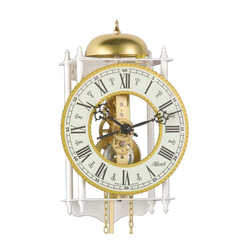 HERMLE 70733-000711 là thiết kế đồng hồ độc đáo bậc nhất đến từ thương hiệu Hermle. HERMLE 70733-000711 không phải mặt đồng hồ tròn truyền thống, cũng không phải đồng hồ vuông vắn mạnh mẽ. Cực phẩm đồng hồ đến từ Đức có hình dáng tựa như một vành đĩa lớn với phần hở nhỏ ở giữa giúp người sử dụng có thể dễ dàng chiêm ngưỡng bộ máy đồng thau màu vàng Gold sáng lấp lánh. Cách Hermle kết hợp màu sắc chưa bao giờ làm công chúng thất vọng, và HERMLE 70733-000711 chính là minh chứng đỉnh cao và cụ thể nhất. HERMLE 70733-000711 là sự kết hợp hoàn hảo giữa tông trắng, vàng Gold, đồng và đen. Tông trắng thanh lịch được bố trí hoàn hảo ở vị trí khung và mặt đồng hồ. Sắc vàng Gold sang trong được nhấn nhá ở các vị trí cực đắt của HERMLE 70733-000711 như viền ngoài, viền trong, chuông bát trên đỉnh đồng hồ.