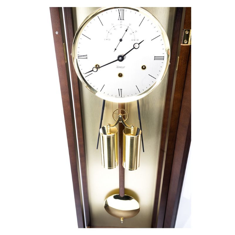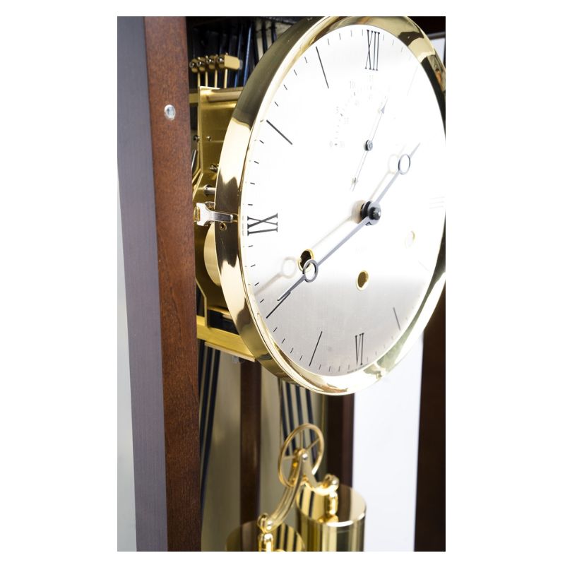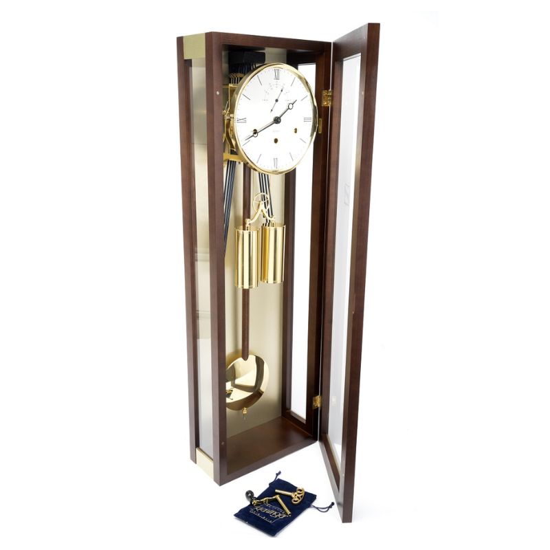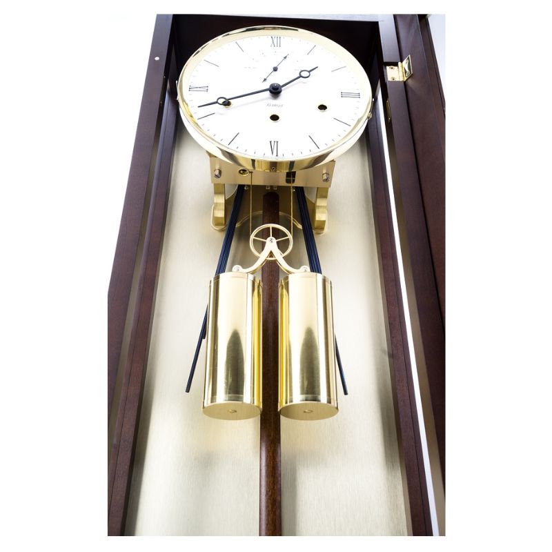 Đây là một mẫu đồng hồ treo tường tuyệt đẹp với tông màu trầm từ gỗ óc chó có độ bền cao. Đây là loại gỗ thường được sản xuất các loại sản phẩm cao cấp trong đó có đồng hồ. Mặt số đồng hồ phẳng được tráng men, chính vì thế nó luôn tỏa sáng long lanh ở mọi góc nhìn. Các số chỉ giờ được ghi bằng số La Mã có kích thước cân đối. Đặc biệt, quả lắc của sản phẩm có trắng vàng sáng, nổi bật khi nhìn từ phía trước và dễ tạo được ấn tượng đối với người xem. Kieninger 2175-23-02 chạy bằng sức nặng của hai quả tạ được thiết kế cân đối.