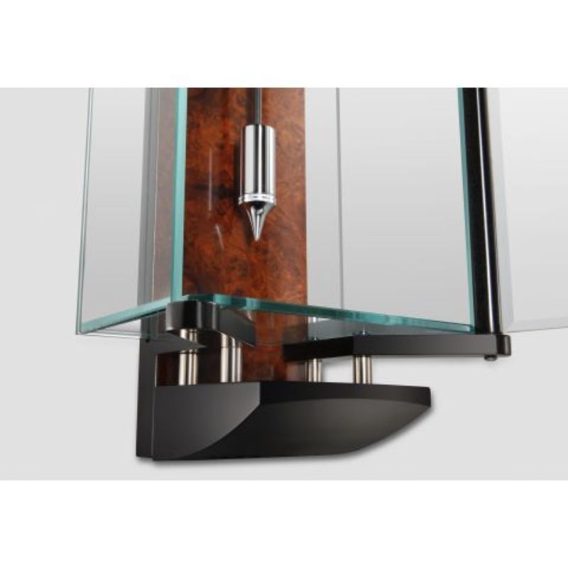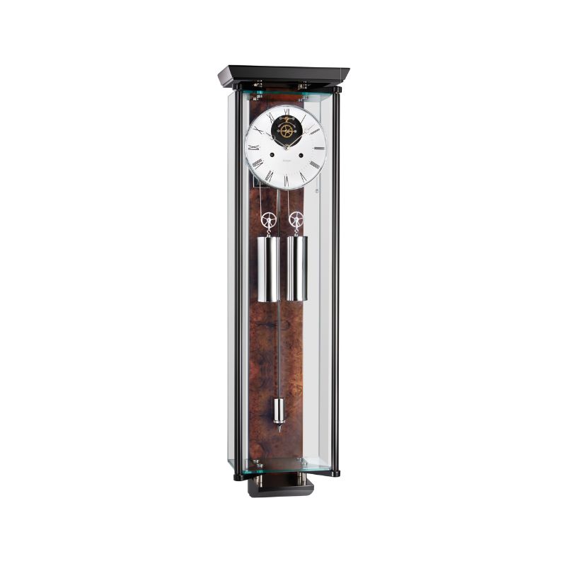 – Vỏ đồng hồ được làm bằng gỗ Óc chó (Walnut) phủ sơn mài màu đen. Máy đồng hồ và quả lắc bằng đồng thau mạ crôm.