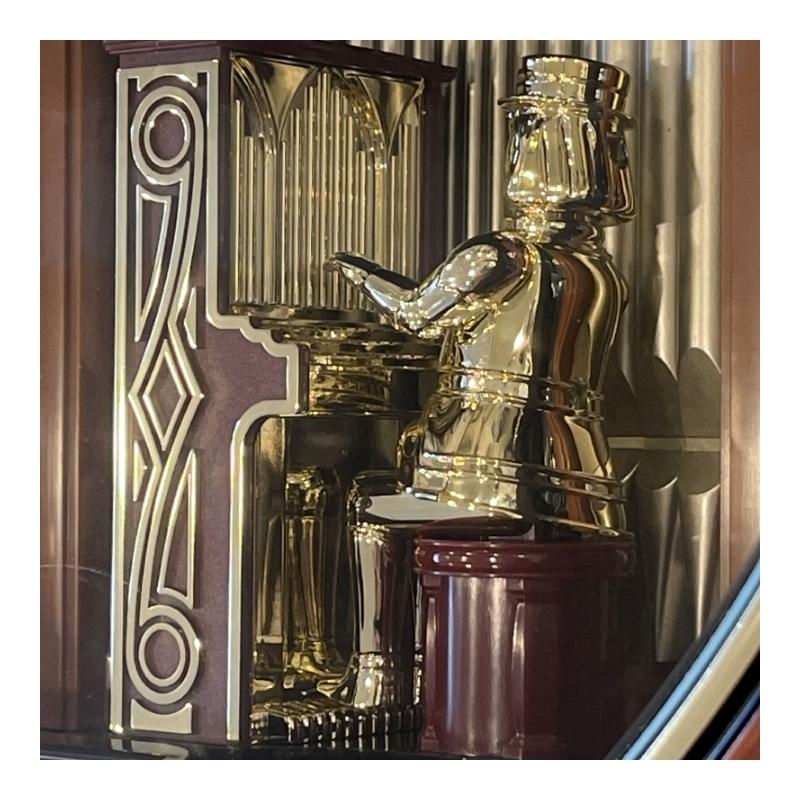 – Mỗi giờ, đồng hồ dạo nhạc và hình người nhạc sĩ chơi piano sẽ chuyển động để đánh đàn.