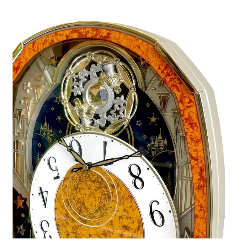 – Mỗi giờ, đồng hồ dạo nhạc và mặt số đồng hồ chuyển động xoay xuống phía dưới để lộ ra 1 bánh xe vàng may mắn có các thiên thần nhảy múa.