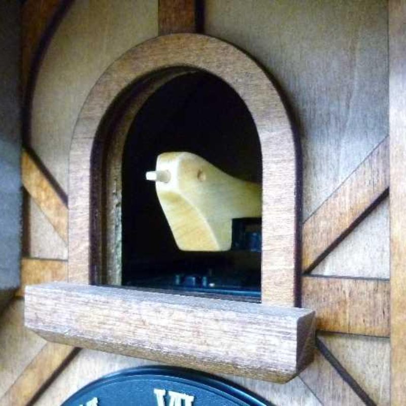 – Khi đến tròn giờ, chim cuc cu ở trên cửa số sẽ hót báo giờ, kèm theo đó là cối xay nước sẽ chuyển động và phát âm thanh.