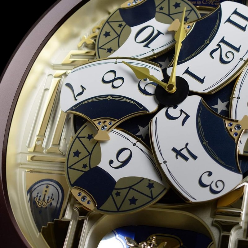 – Mỗi giờ, đồng hồ dạo nhạc và mặt số đồng hồ mở ra, chuyển động theo tiếng nhạc.