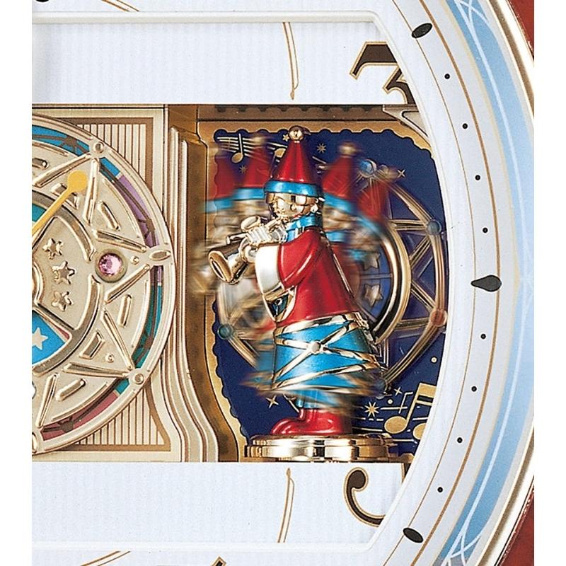 – Mỗi giờ, đồng hồ dạo nhạc và mặt số đồng hồ tách ra, chuyển động theo tiếng nhạc.